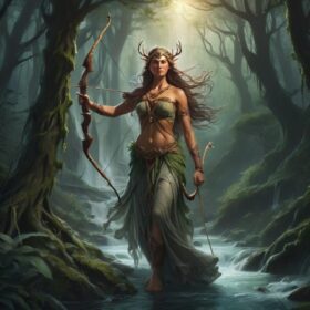 Abnoba est une déesse gauloise autrefois vénérée dans la Forêt-Noire, en Allemagne. Son nom signifierait « rivière » ou « eau » , ce qui indiquerait qu’elle était à l’origine un esprit gardien de la rivière. Un ancien autel et des thermes romains à Muhlenbach comparaient Abnoba à Diane, déesse romaine de la chasse. On peut affirmer sans risque de se tromper qu’Abnoba partage de nombreuses autres qualités avec Diane, comme un domaine sur la lune et la faune. Une chaîne de montagnes porte également son nom, faisant d’elle une ancienne déesse française de l’eau et de la terre.