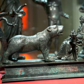On ne sait pas grand-chose d’ Artio , une déesse française antique, mais on sait qu’elle était intimement liée aux ours. Les rares preuves de l’existence de son culte ont été retrouvées en Suisse moderne et dans le sud de l’Allemagne. Une statue en bronze représentant Artio nourrissant un ours géant a été découverte à Berne, en Suisse. Les érudits affirment qu’elle nourrit l’ours parce qu’elle a une coupe de fruits sur ses genoux. Il y eut jadis une grande légende sur cette rencontre, j’en suis sûr ; cependant, avec le temps, la légende d’Artio s’est perdue. L’inscription sur la statue de Berne signifie « pour la déesse Artio ». Comme pour le nom d’Artémis, on retrouve le lien avec l’ours dans le nom d’Artio. Art signifie « ours » en gaulois.