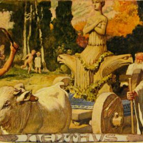 Nerthus est une autre divinité germanique probablement vénérée par les Francs. Nous en connaissons l’existence grâce aux écrits de Tacite. Il est intéressant de noter que Nerthus est considérée comme une déesse de la fertilité et de la terre, mais son lieu de résidence, ou lieu sacré, était considéré comme une île secrète quelque part dans l’océan. Certains érudits pensent que son nom se traduit en réalité par « terre », et qu’elle était connue comme la dame du cortège de charrettes. Les anciens peuples germaniques transportaient son image et, paraît-il, noyaient les sacrifices qui lui étaient destinés dans son lac sacré.