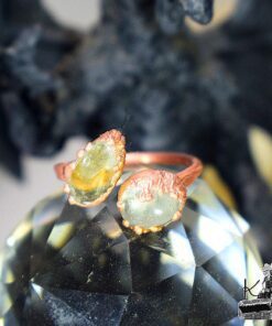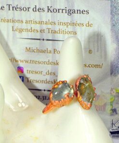 Faites entrer la lumière dans votre quotidien avec la bague Briaca. Façonnée à la main dans l’atelier enchanté du Trésor des Korriganes, cette création unique marie la chaleur du cuivre à l’éclat doré de deux véritables citrines. Tel un rayon de soleil perçant la canopée de la forêt, ce bijou est une invitation à la joie et à la vitalité.