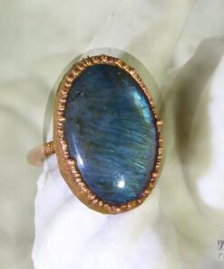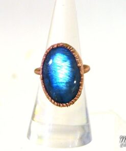 Découvrez la Bague Luner : une bague artisanale unique en cuivre et labradorite (T54). Alliez protection et magie avec cette création féérique signée Le Trésor des Korriganes.