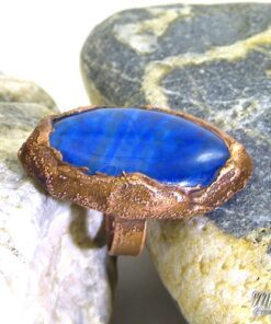 Imposante et hypnotique, la Bague Ondine semble renfermer le feu sacré des temps anciens. Née de l’alliance brute entre le cuivre, métal conducteur d’énergie, et une spectaculaire Agate Veine de Dragon, cette création évoque la force tellurique des forêts profondes. Façonnée à la main pour sublimer les contrastes, elle est une pièce maîtresse destinée à celles qui n’ont pas peur d’affirmer leur puissance spirituelle et leur connexion avec les mondes invisibles.