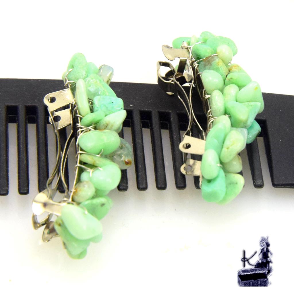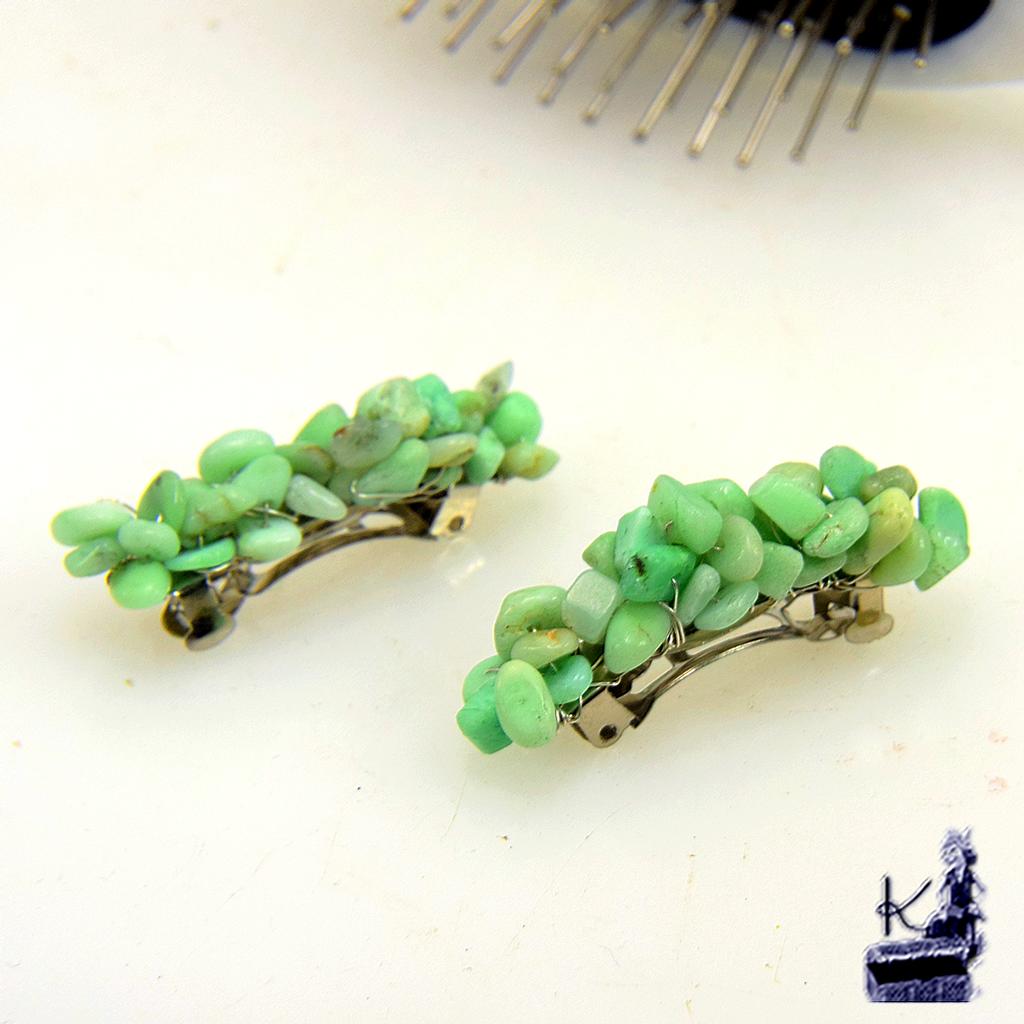 Matériel utilisé : 2 barrettes à cheveux en métal argenté , perles naturelles en opale verte