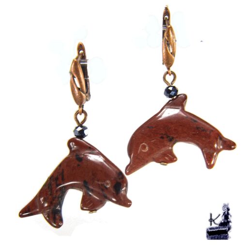 Pierres : Dauphins sculptés en Jaspe Rouge naturel.