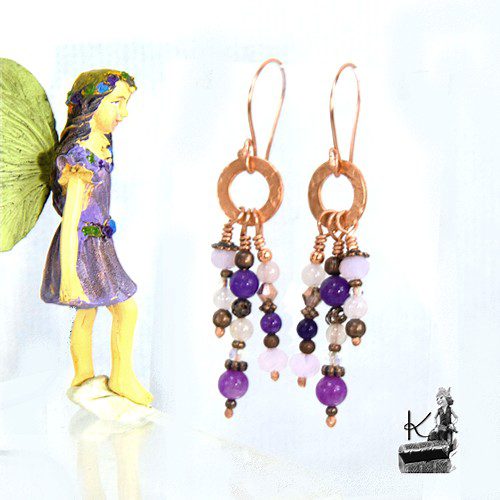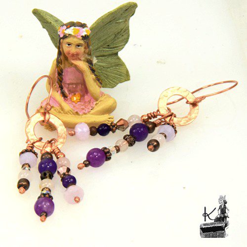 Bijoux d’oreille elfique – cuivre, améthyste et cristal