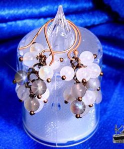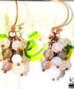 Matériel utilisé : perles en pierre de lune, crochets en cuivre