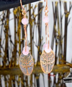 Petite légende :Un arbre majestueux unique au monde et aussi vieux que le monde est monde et pourtant toujours aussi beau trônait au beau milieu d’une grande prairie. Sa vitalité est toujours un grand mystère et force l’admiration de tous. L’arbre des dieux, c’est ainsi qu’il est maintenant surnommé car on le prétend immortel. On fabrique même des bijoux à son effigie comme cette jolie paire de boucles d’oreille.