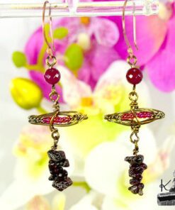 Ne vous fiez pas à la délicatesse de ces pierres, car elles cachent un secret millénaire. On murmure que lorsque l’on observe ces grenats de près, on peut ressentir une présence invisible à l’œil nu, une vibration douce mais puissante qui tente d’entrer en contact avec notre moi intérieur. Il s’agirait de l’Esprit de la Terre, gardien de la mémoire des anciens ayant foulé ces sentiers bien avant nous. Porter ces boucles d’oreilles, c’est accepter de devenir le réceptacle de cette sagesse ancestrale et de renouer le dialogue avec nos racines oubliées.