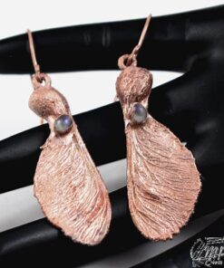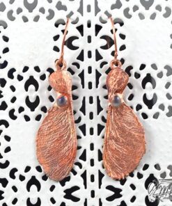 - Matière principale : Véritables samares d’érable (hélicoptères) séchées et immortalisées par un placage de cuivre (électroformage).