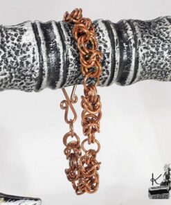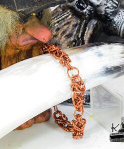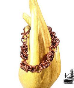 Laissez la magie des anciens mondes s’enrouler autour de votre poignet. Dans l’ombre des chênes centenaires, là où les Korriganes forgent les destinées, ce bracelet en cuivre naturel a été patiemment tissé anneau après anneau selon la technique médiévale du chainmaille. Plus qu’une parure, c’est une armure de lumière, une maille sacrée qui lie la force brute de la terre à la douceur de votre peau, vous offrant une parure à la fois sauvage et raffinée.