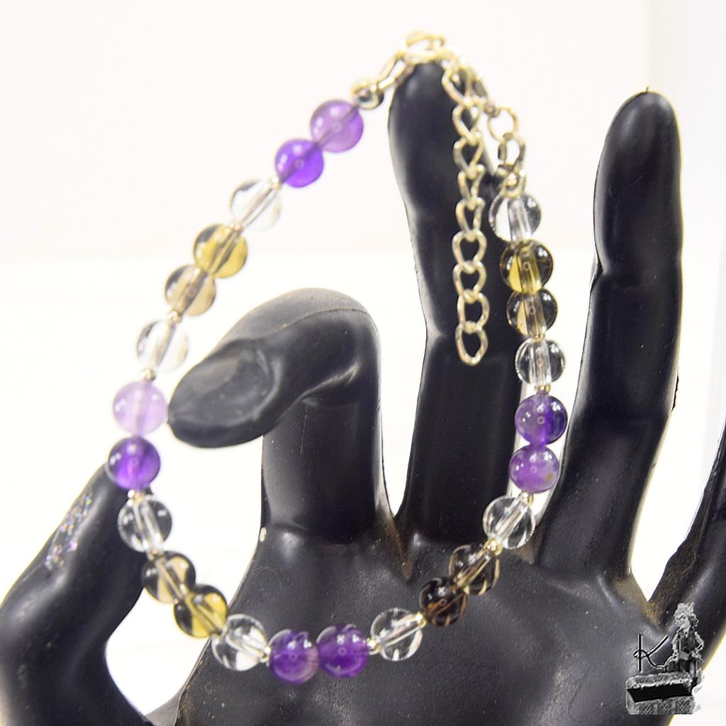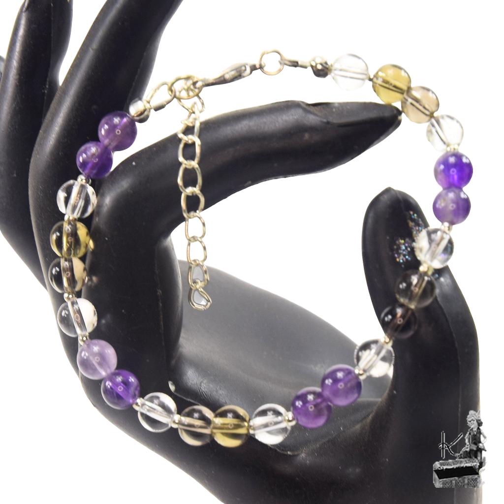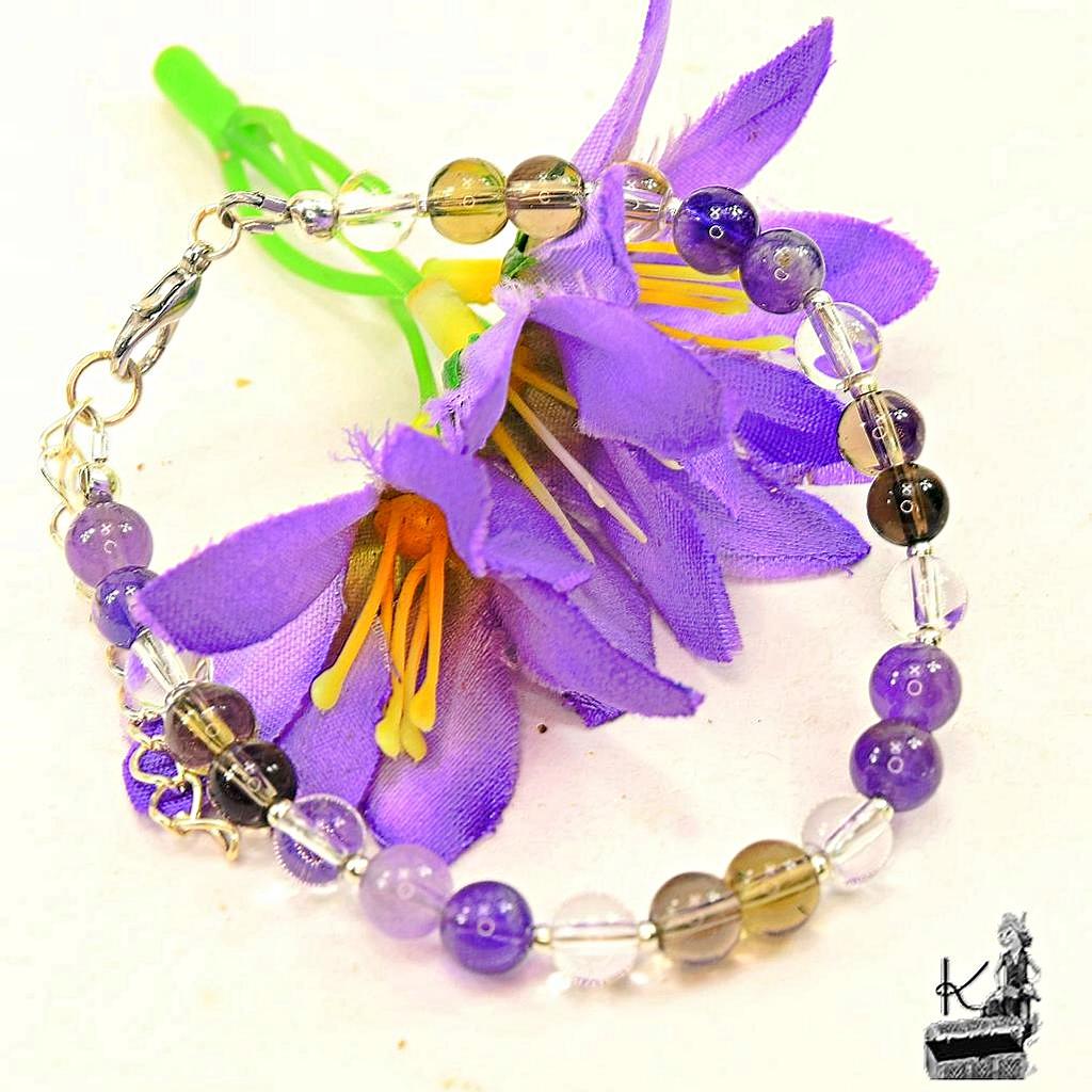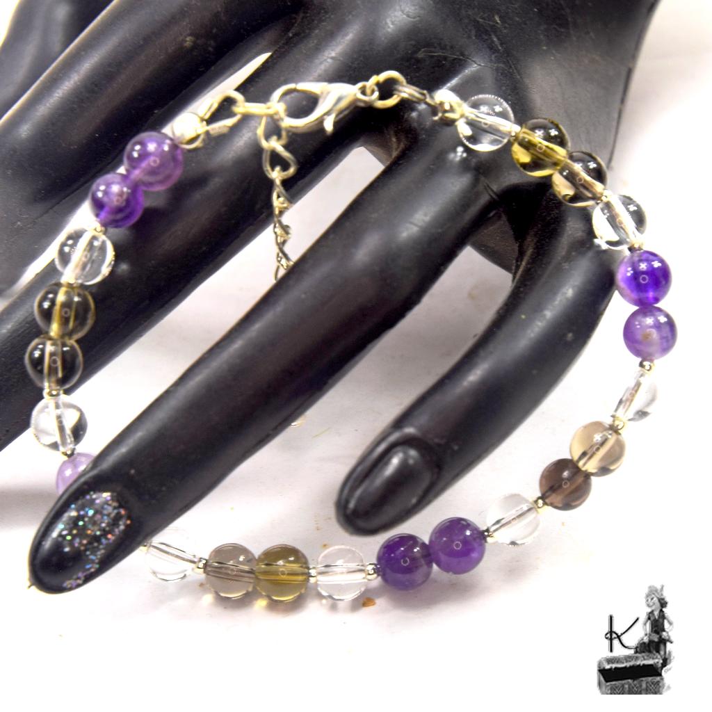 Bracelet Frida – perles en cristal de roche, quartz fumé et améthyste ( anti addictions )