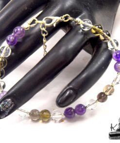 Ce bracelet artisanal unique combine les vertus de l’améthyste, du quartz fumé et du cristal de roche pour offrir un soutien énergétique puissant favorisant l’ancrage, la clarté mentale et l’accompagnement lors d’une démarche de détoxification émotionnelle.