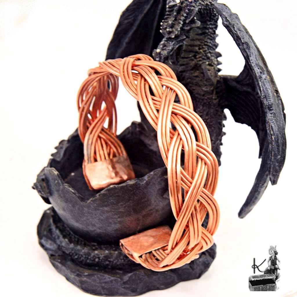 Conception : Tressage complexe et minutieux réalisé à la main avec 15 brins de cuivre.