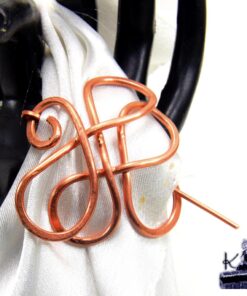 Sublimez vos étoles avec la broche d’écharpe Doni du Trésor des Korriganes, une fibule artisanale en cuivre naturel forgée à la main offrant ancrage énergétique et élégance d’inspiration médiévale-fantastique.