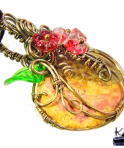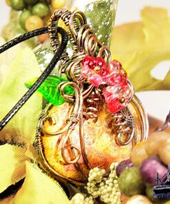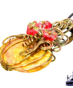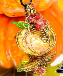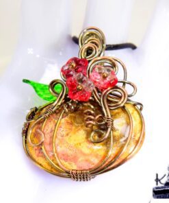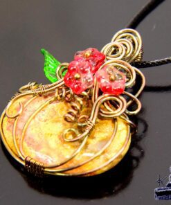 Pendentif avec un magnifique corail fossilisé transformée en citrouille wire wrapped en cuivre naturel patiné au sel