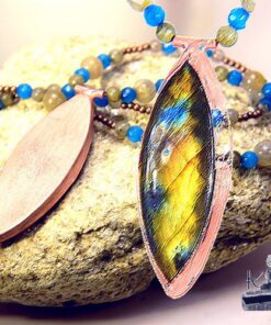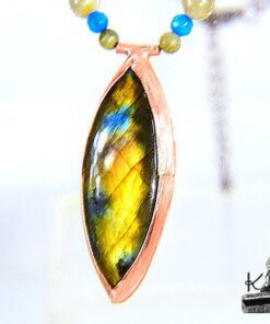 Pierres principales : Magnifique cabochon de Labradorite aux irisations captivantes et perles de Labradorite assorties.