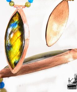 Évadez-vous dans les murmures de la nature avec cette création unique, où la magie minérale rencontre le savoir-faire artisanal. Ce collier, forgé à la main, semble avoir été extrait d’un conte ancien oublié sous la mousse des bois. L’alliance lumineuse du cuivre naturel et des reflets mystiques de la labradorite fait de ce bijou un talisman de sagesse, prêt à accompagner celle qui cherche à harmoniser son esprit avec les forces bienveillantes de la terre.