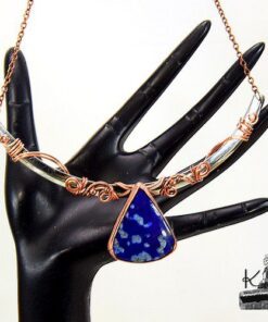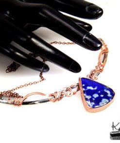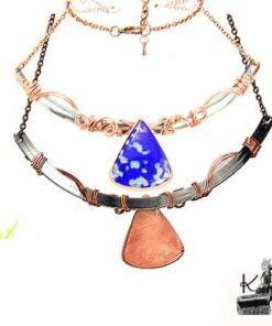 Laissez-vous transporter par l’éclat bleu nuit de ce bijou d’exception, véritable pont entre les civilisations antiques et la magie sylvestre. Ce collier, né d’un travail de wire wrapping minutieux, marie la noblesse de l’argent à la chaleur du cuivre pour sublimer un Lapis-Lazuli aux reflets stellaires. Une pièce unique, pensée pour la femme qui porte en elle la force des déesses et le mystère de la nature sauvage.