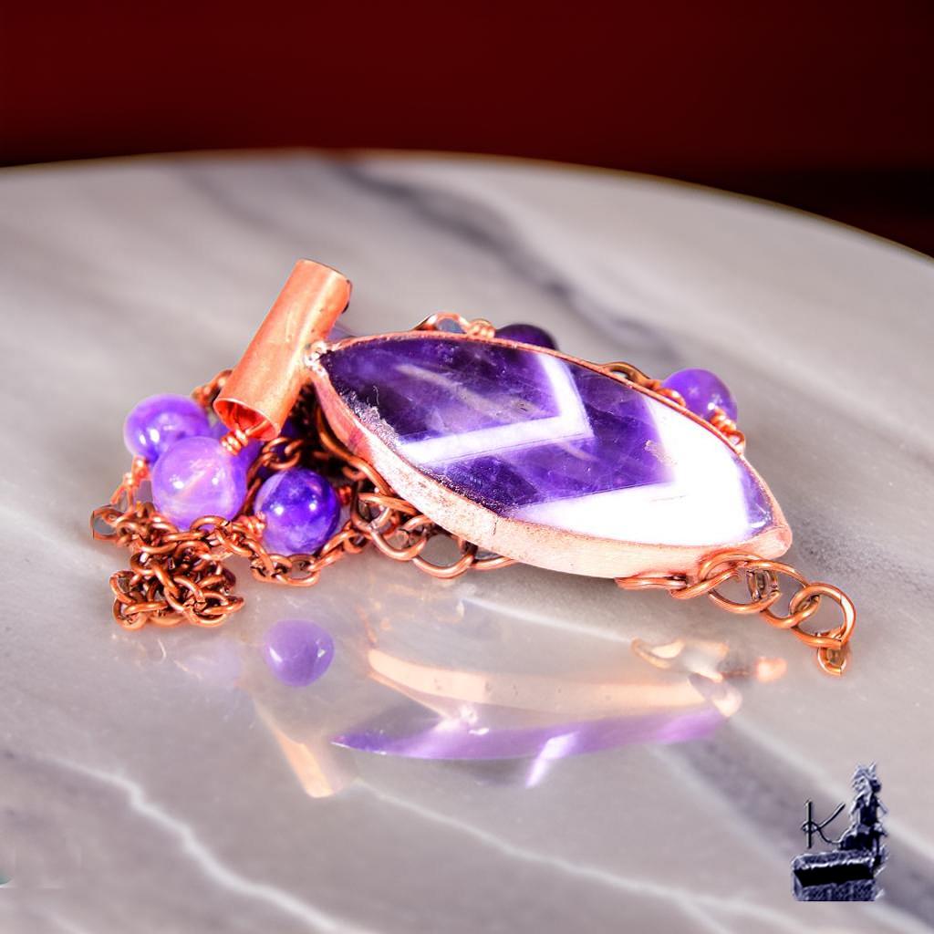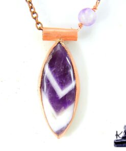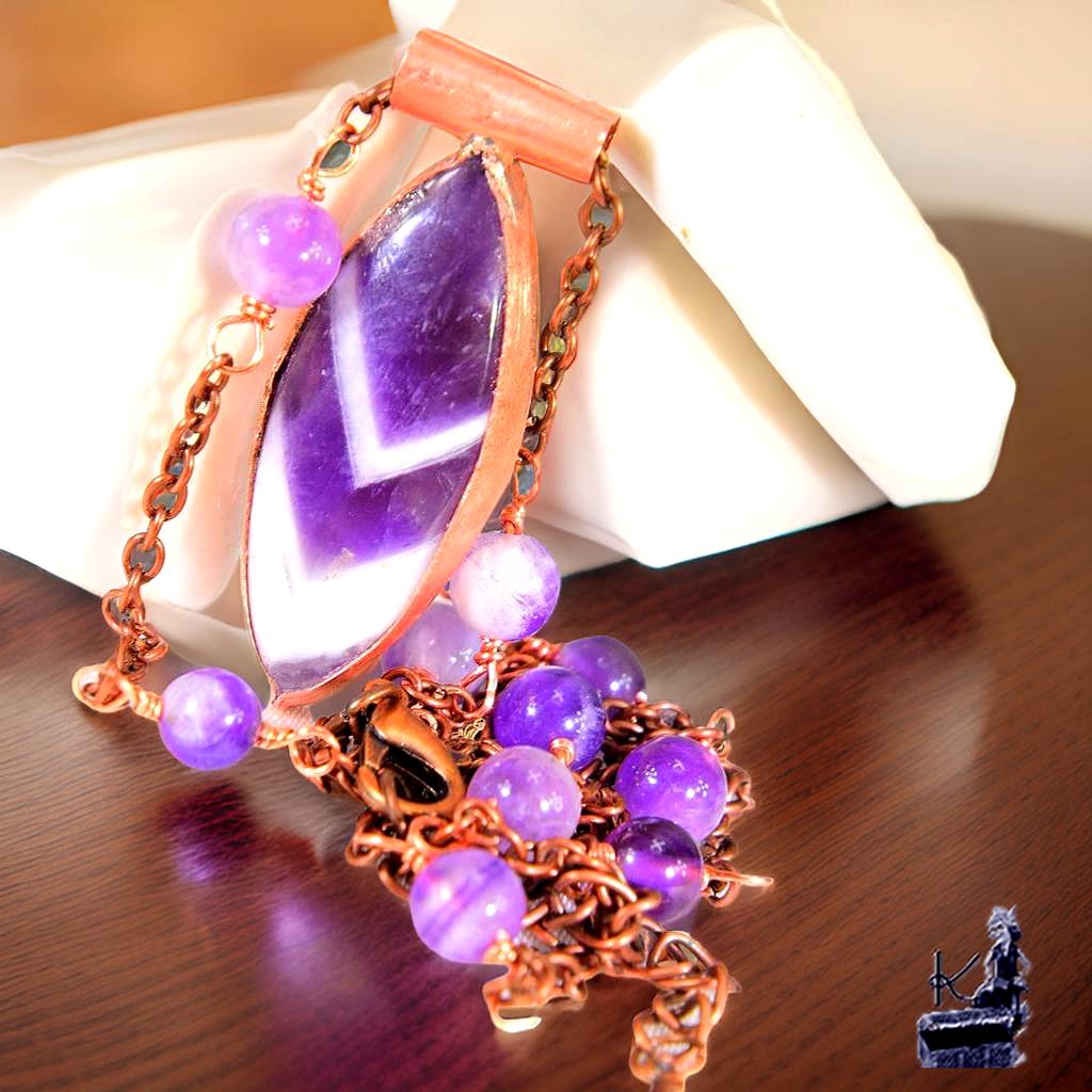 Laissez-vous transporter par la magie des anciens peuples avec cette création artisanale unique, née de l’union entre la force du cuivre et la spiritualité de l’améthyste. Ce bijou, véritable fragment de ciel nocturne capturé dans la matière, semble avoir été forgé au cœur d’une forêt sacrée pour guider celles qui cherchent à harmoniser leur vie avec les cycles de la nature. Un talisman précieux, conçu pour révéler la lumière qui sommeille en vous.