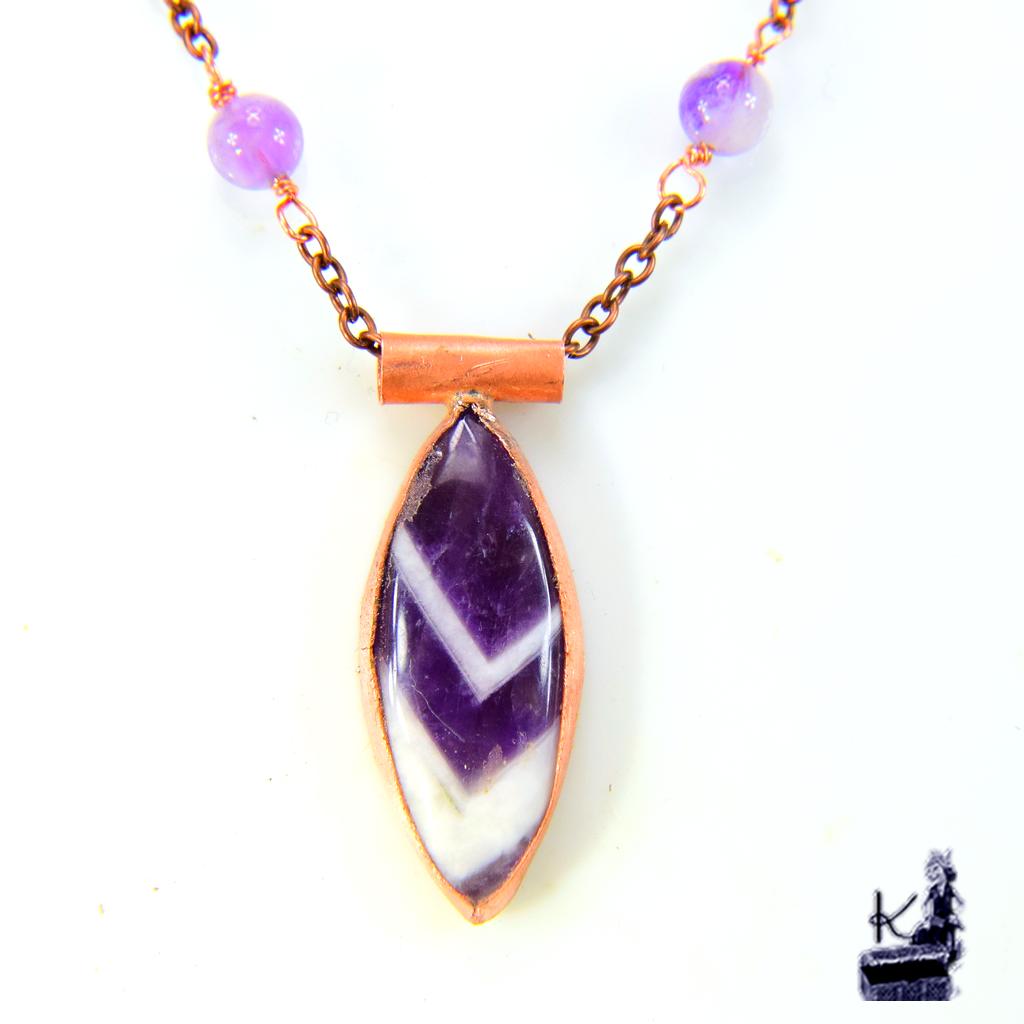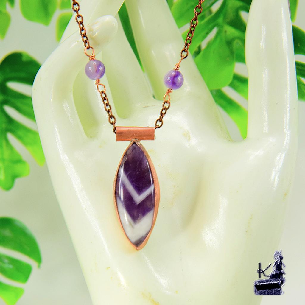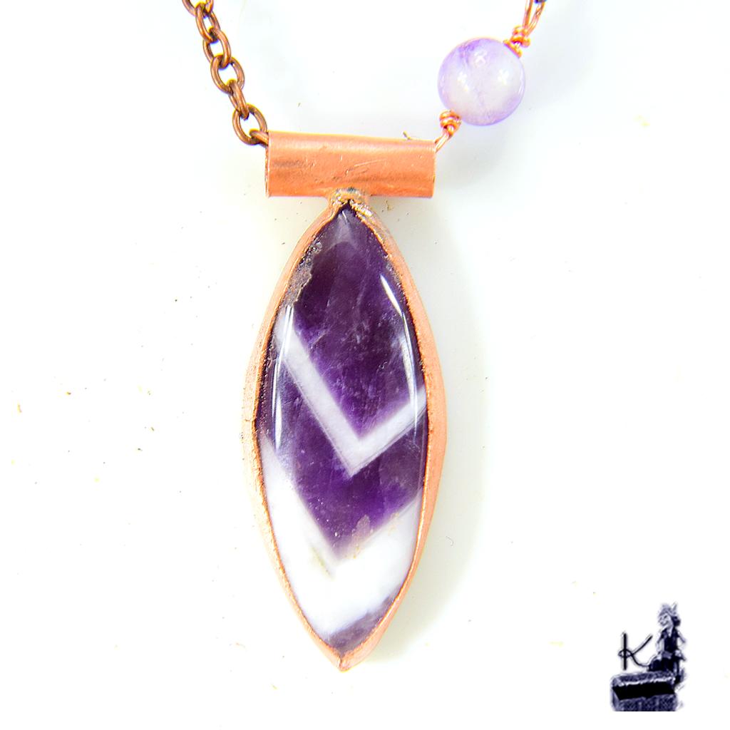 Pierre centrale : Magnifique cabochon en Améthyste Chevron (aux motifs en « V » naturels).