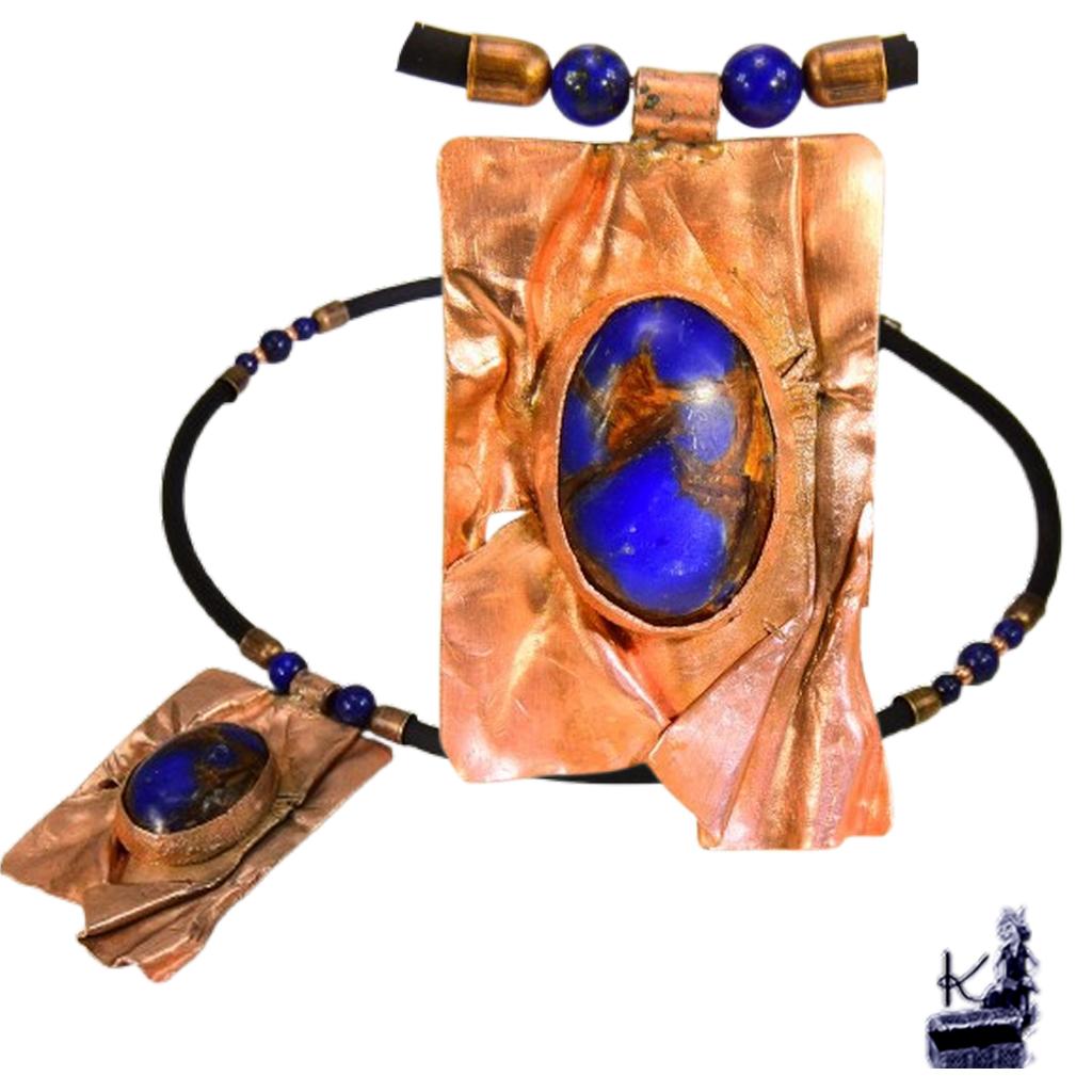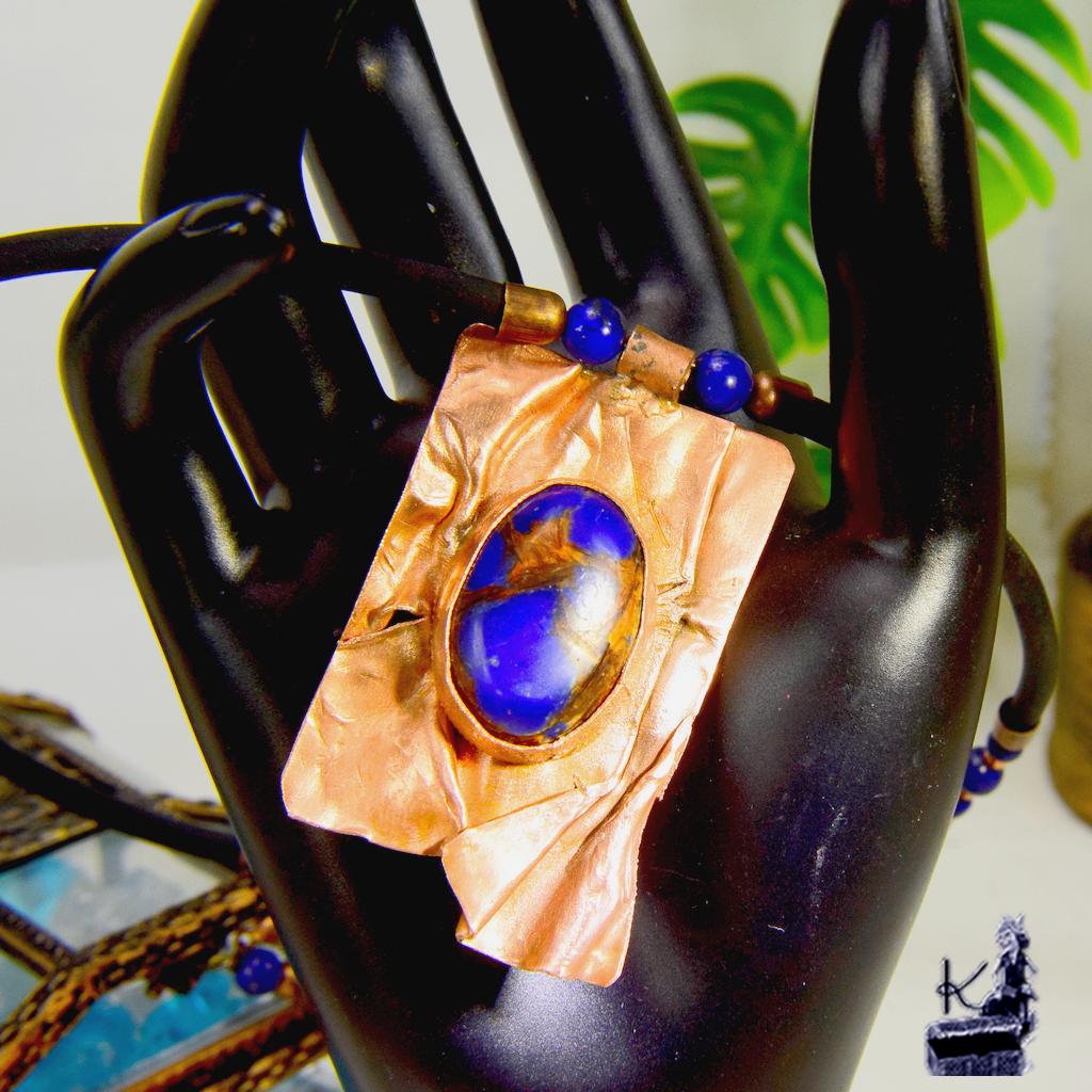 Laissez-vous envoûter par l’éclat profond de ce bijou d’exception, véritable lien entre la sagesse des anciens rituels et la magie de la nature sauvage. Ce collier, où le bleu royal du lapis-lazuli s’entremêle aux veines de cuivre, semble avoir été forgé au clair de lune dans la forêt des Korriganes. Une pièce unique, pensée pour la femme qui souhaite porter sur son cœur un fragment d’histoire et une protection souveraine.