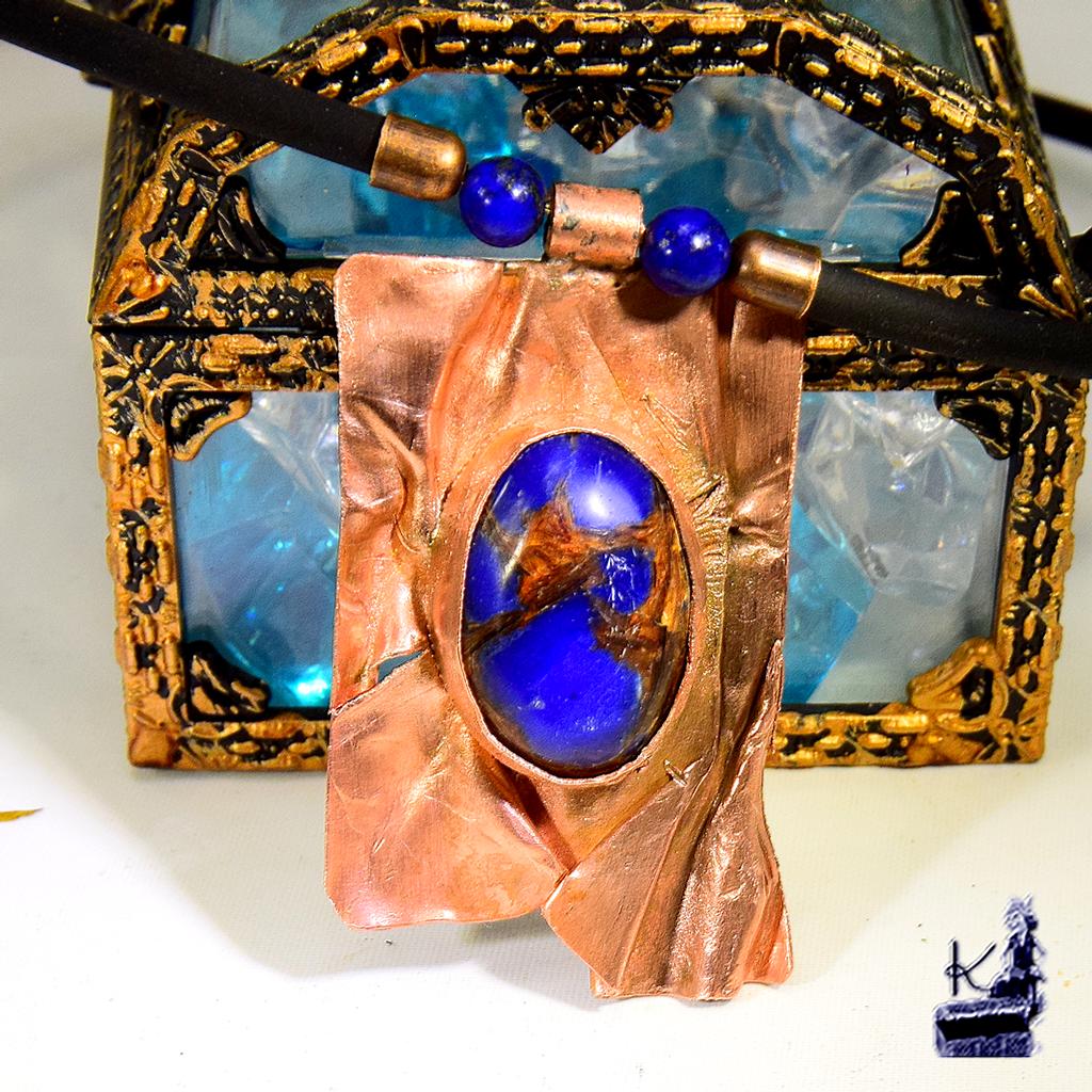 Pierre centrale : Magnifique cabochon en Lapis-Lazuli « Copper » (nuances de bleu et inclusions de cuivre).