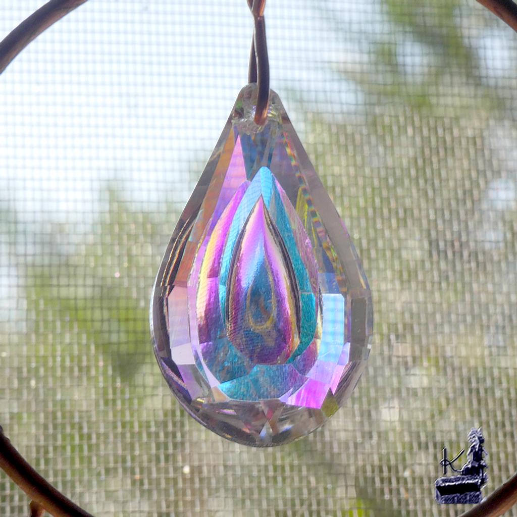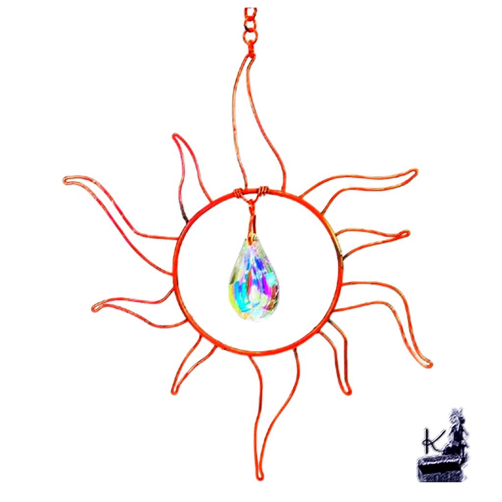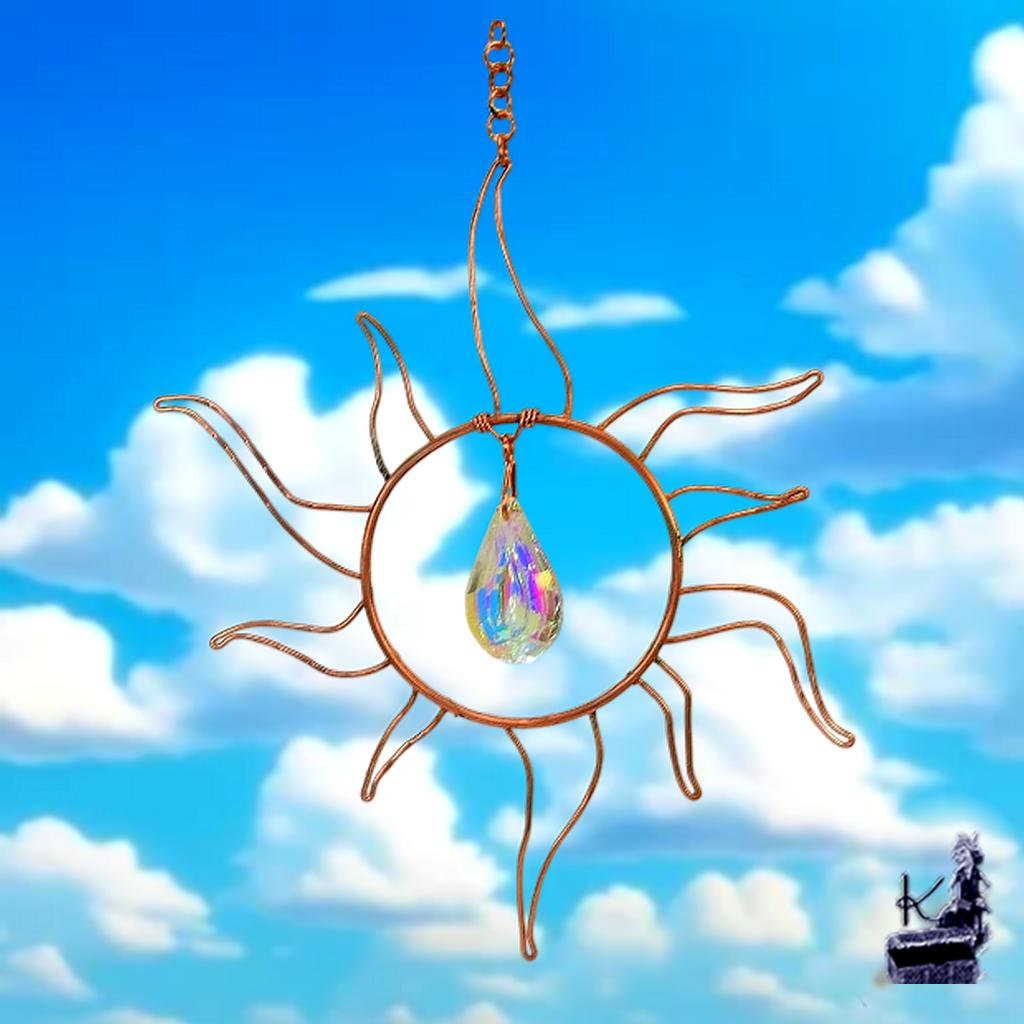 Illuminez votre jardin avec le Suncatcher artisanal Maelez, un capteur de soleil en cuivre et cristal facetté conçu selon les principes du Feng Shui pour transformer la lumière naturelle en une pluie d’arcs-en-ciel apaisante.