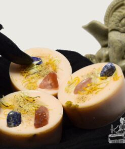 Pour ce rituel de création, nous avons marié des essences dynamisantes à un trio de pierres sacrées agissant sur le plexus solaire et le centre de l’expression.