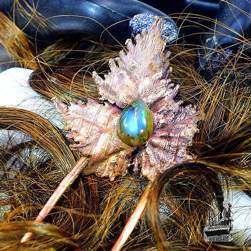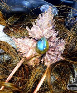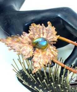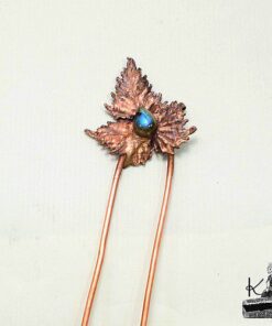 Domptez l’énergie de l’orage avec la fourche à cheveux « Feuille de Foudre », un bijou artisanal en cuivre patiné et labradorite véritable conçu comme un talisman de protection et de prospérité pour sublimer vos chignons d’une élégance mystique.
