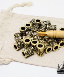 Plongez au cœur des anciennes sagas nordiques avec ce coffret de perles runiques unique. À la croisée des chemins entre accessoire de caractère et objet rituels, ces perles aux reflets antiques semblent avoir été extraites d’un coffre viking enfoui sous les racines d’Yggdrasil. Que vous choisissiez de les porter en parure dans vos cheveux ou de les utiliser pour interroger le destin, elles insufflent une aura de mystère et de force ancestrale à votre quotidien.