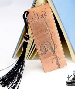 Véritable bijou de bibliophile aux accents « Dark Academia », ce marque-page est une pièce d’orfèvrerie brute. Réalisé en cuivre naturel par un processus d’électro-gravure en bain de sel, il arbore des motifs mystiques évoquant l’intelligence et la protection du corbeau.