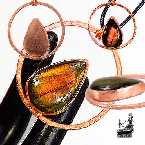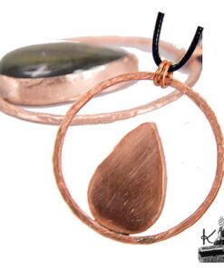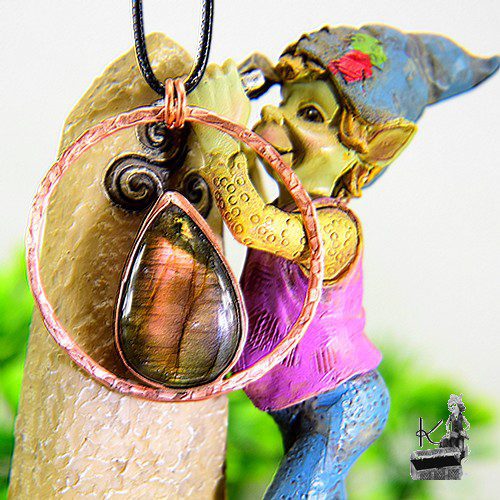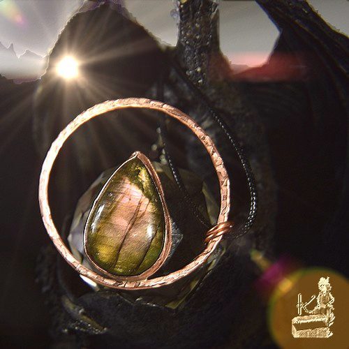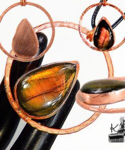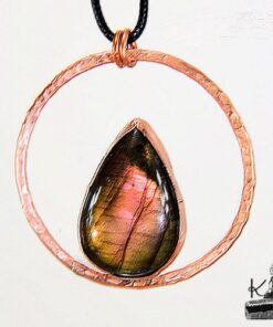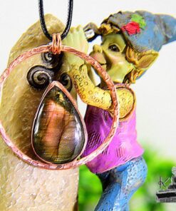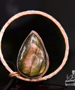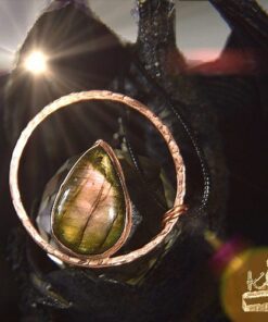 Laissez-vous envoûter par les reflets changeants de cette labradorite véritable, une pierre de lumière sertie avec délicatesse dans un entrelacs de cuivre naturel. Tel un fragment d’aurore boréale capturé au cœur d’une forêt de brume, ce bijou artisanal semble palpiter d’une magie ancienne. Chaque courbe de cuivre, travaillée à la main, vient protéger ce talisman précieux qui n’attend qu’une âme digne pour révéler ses secrets.