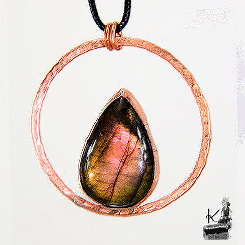 Type de bijou : Pendentif artisanal en wire wrapping (cuivre tissé main).