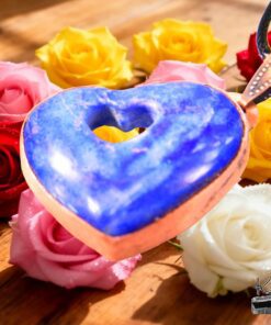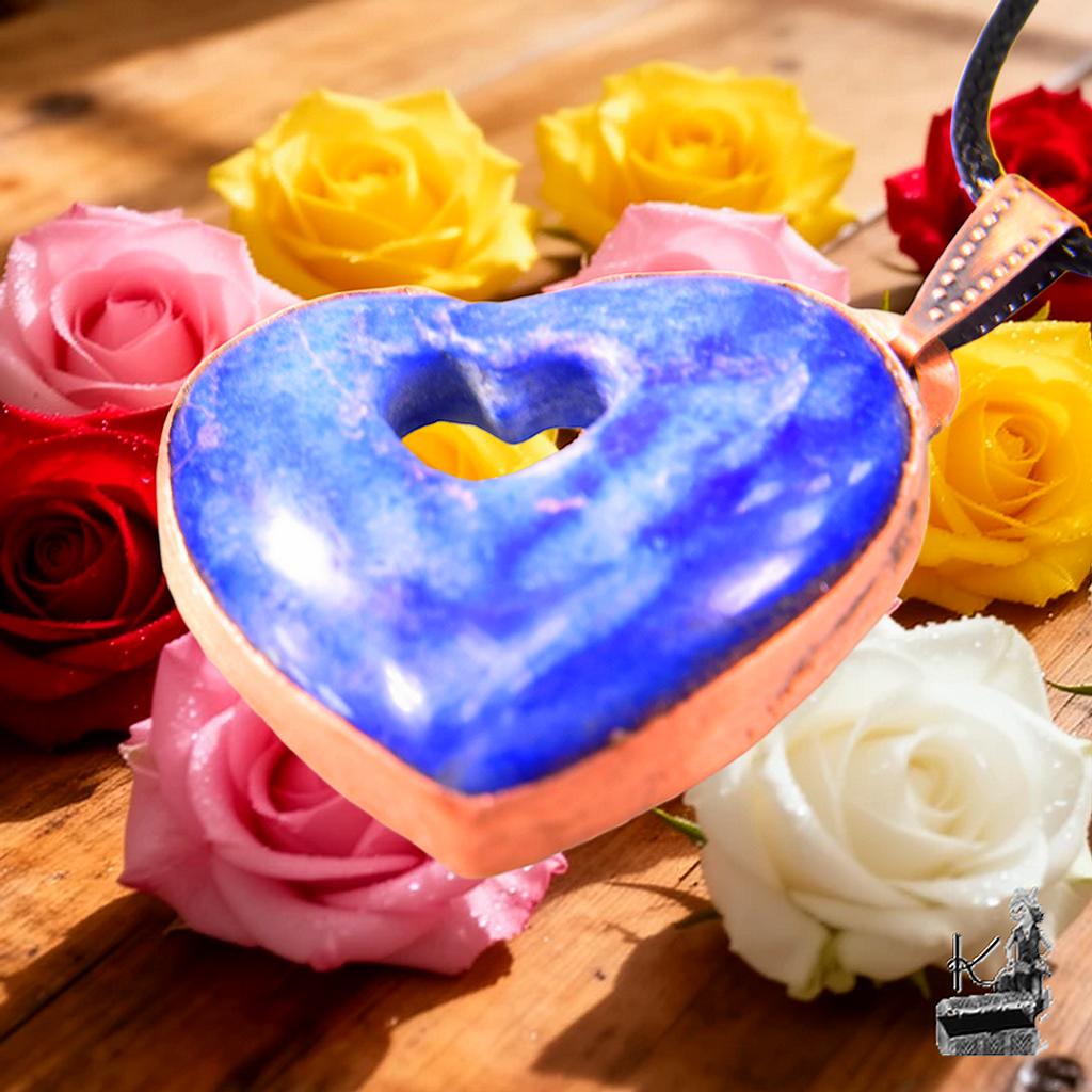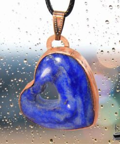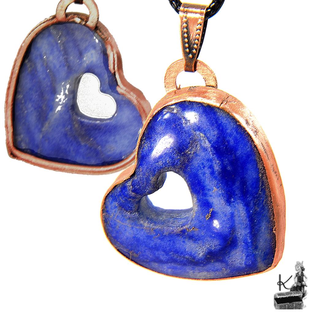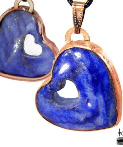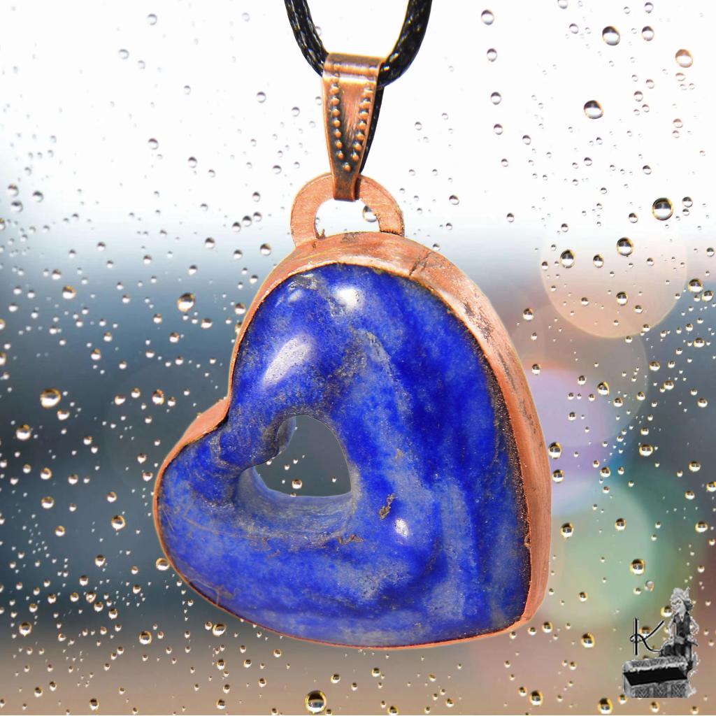 Pierre fine : Lapis-lazuli naturel en forme de cœur, d’un bleu profond parsemé d’éclats de pyrite.