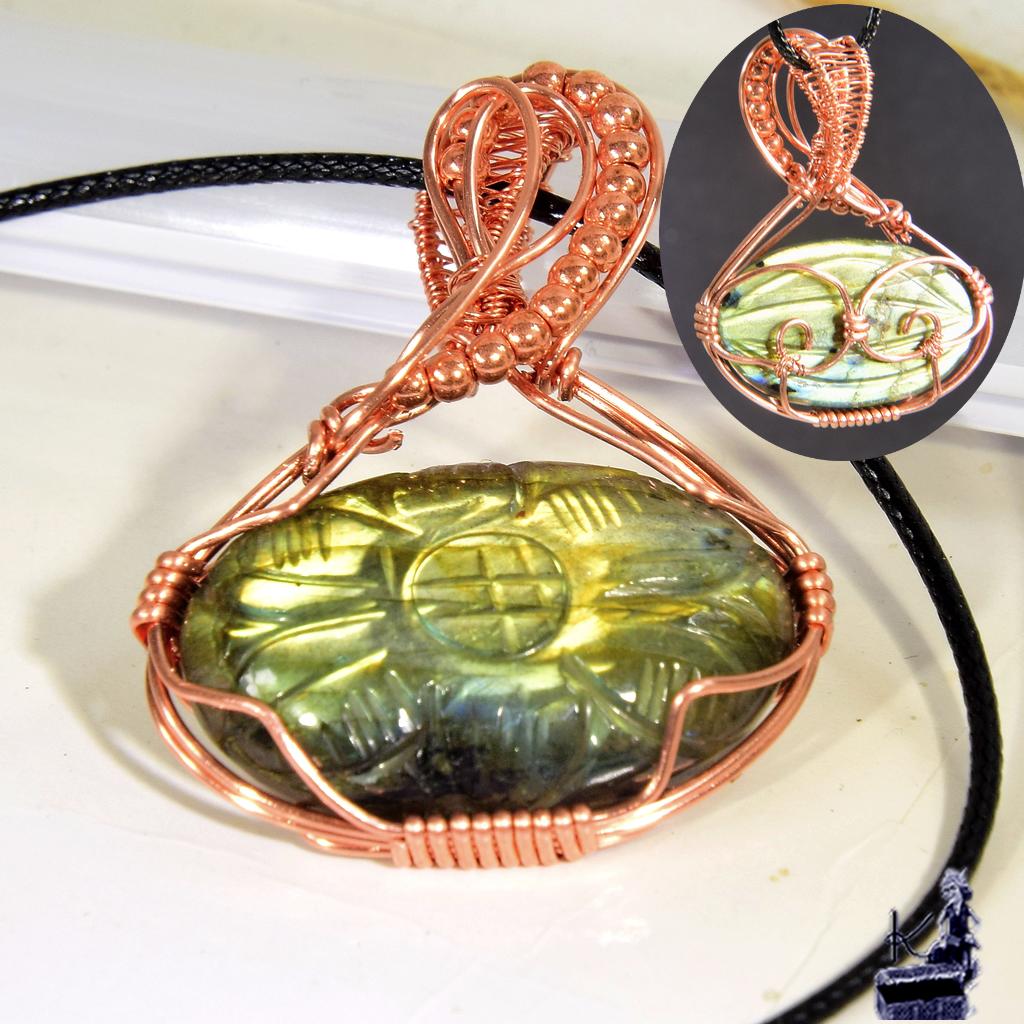 Pendentif Emyra – cuivre et labradorite