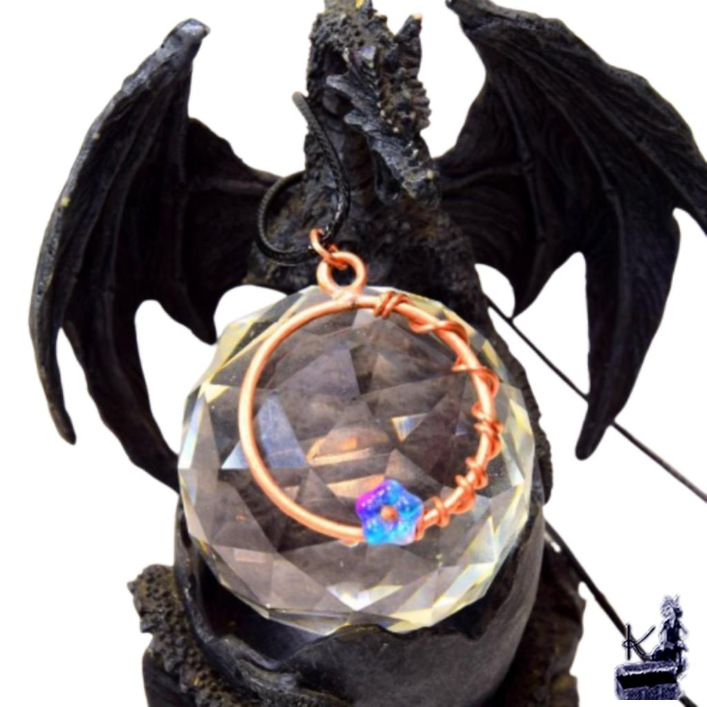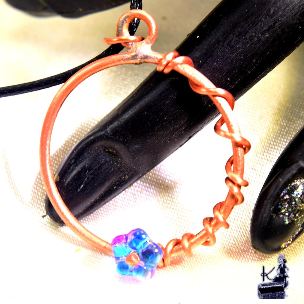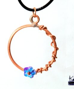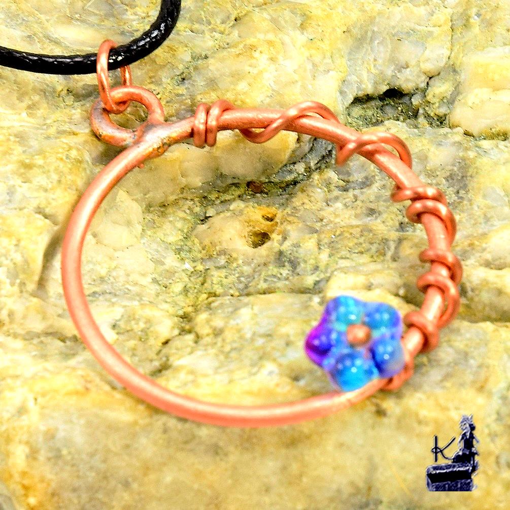 Type de bijou : Pendentif artisanal « fleur » en wire wrapping.