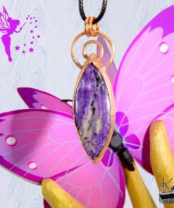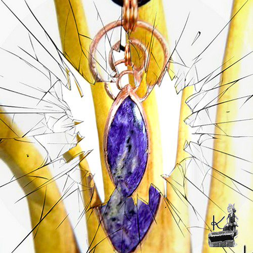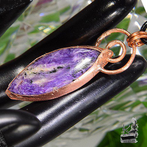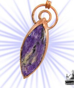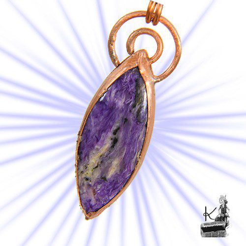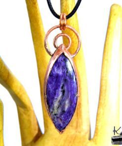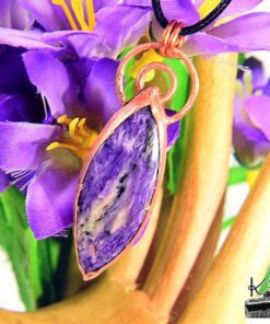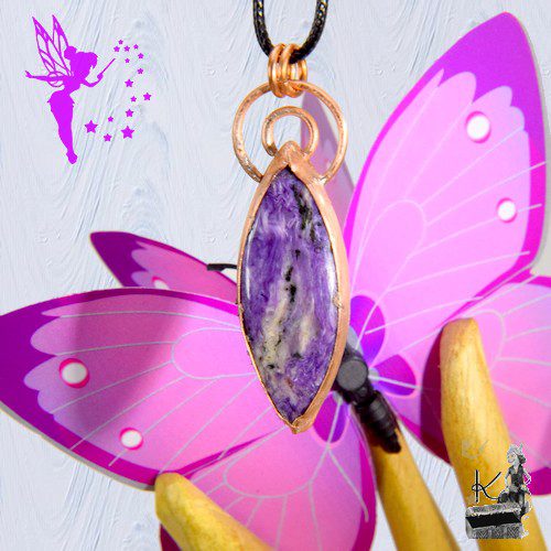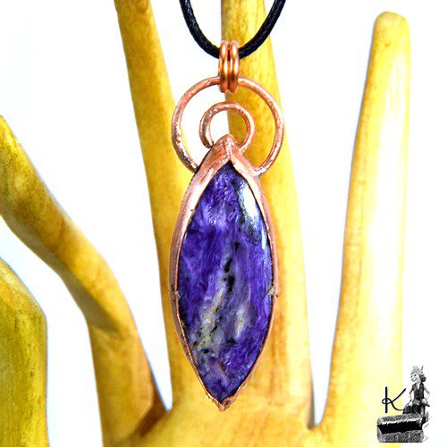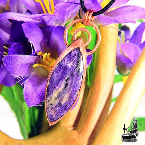 Pendentif entièrement fait main avec une belle charoite véritable serti cuivre.