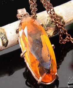 Pendentif fait main en cuivre avec une magnifique citrine taillée. Le tour de cou en cuivre l’accompagnera pour qu’il puisse être porté dès sa réception