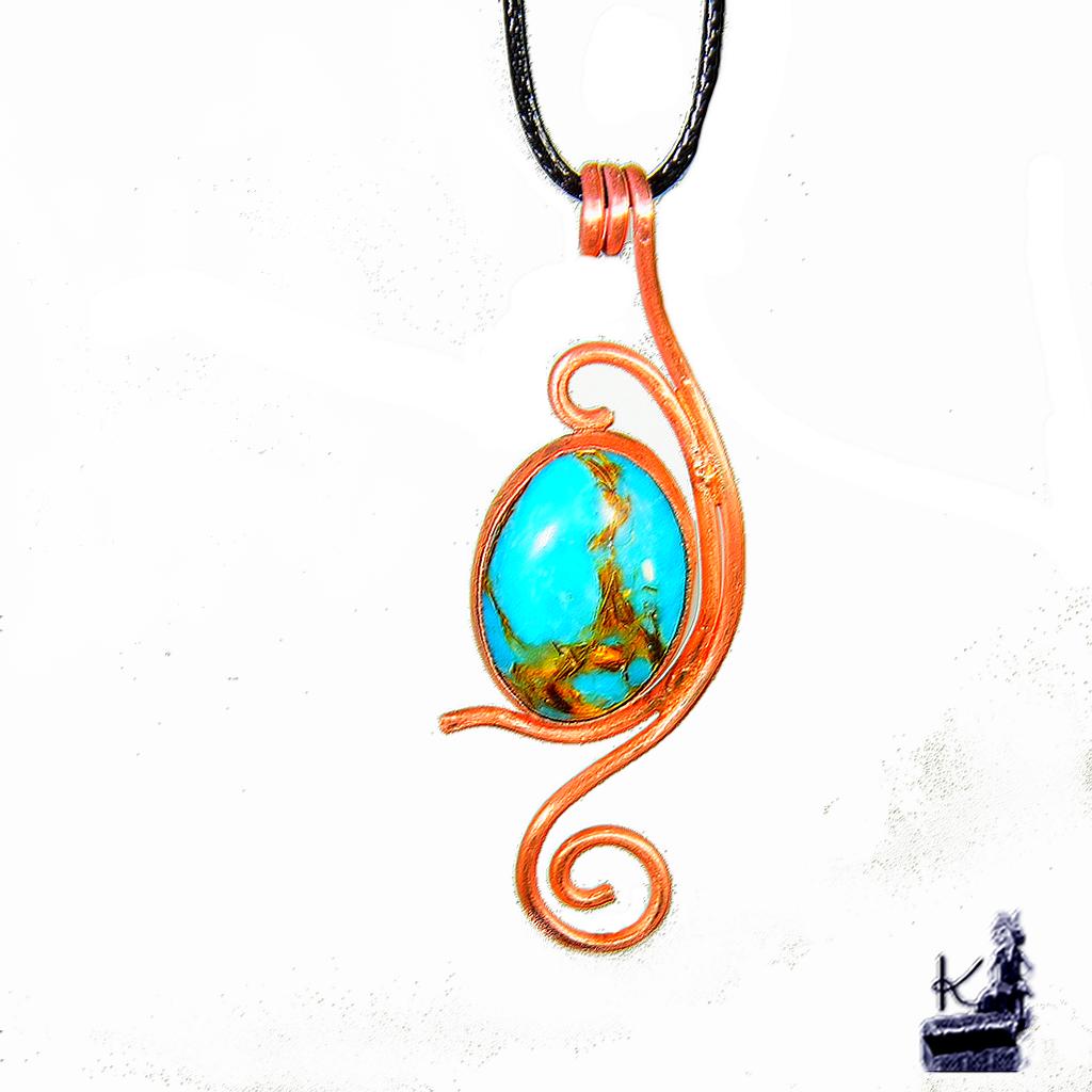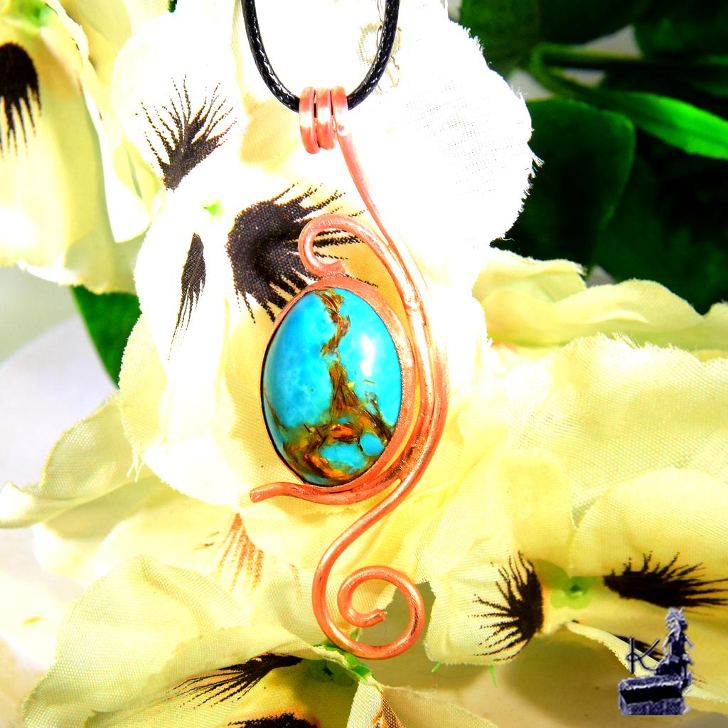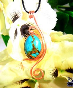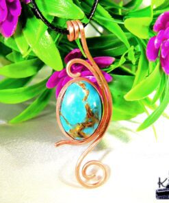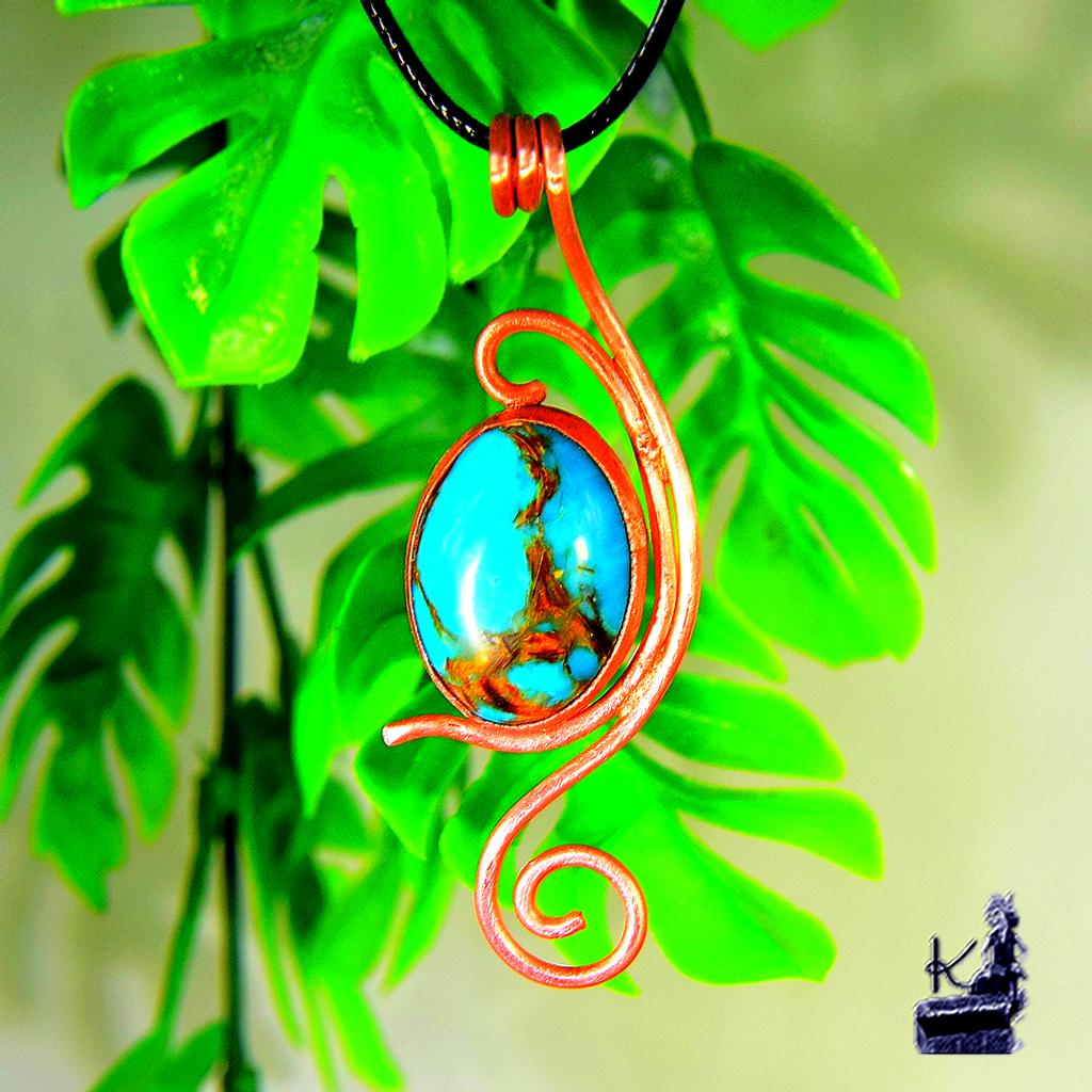 Ce pendentif artisanal « Passage vers l’Ailleurs » en turquoise cuivre bornite est un bijou de joie profonde idéal en lithothérapie pour purifier les énergies négatives, lever les blocages et harmoniser le corps et l’esprit.