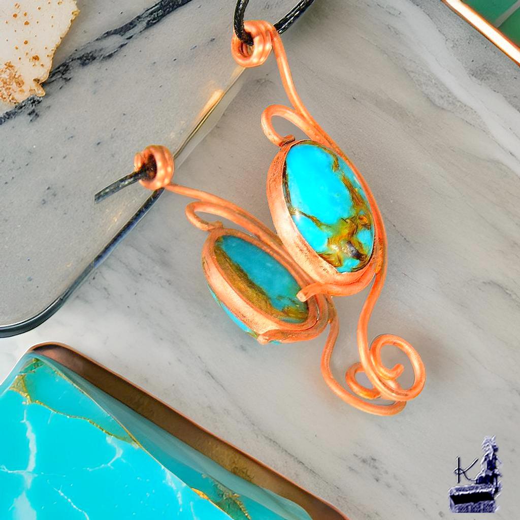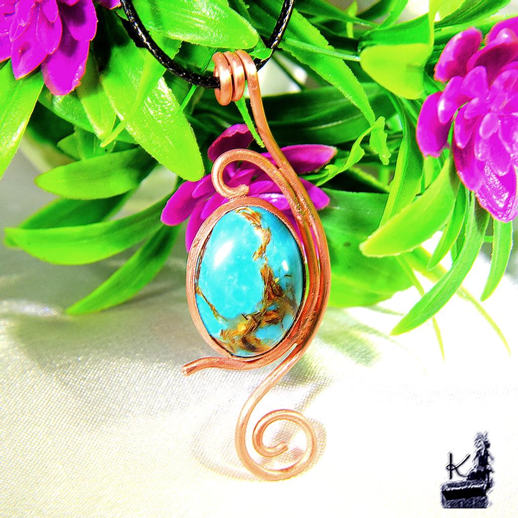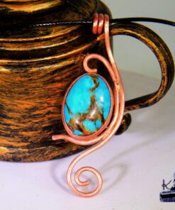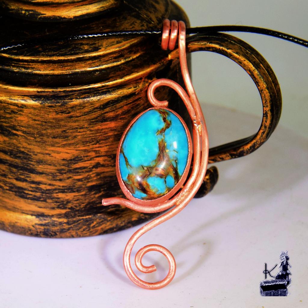 Ce pendentif artisanal « Passage vers l’Ailleurs » en turquoise cuivre bornite est un bijou de joie profonde idéal en lithothérapie pour purifier les énergies négatives, lever les blocages et harmoniser le corps et l’esprit.