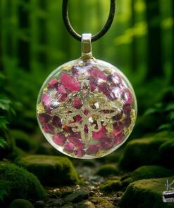 Laissez-vous envoûter par la profondeur de ce pendentif, véritable talisman de protection et de vitalité. À travers la transparence cristalline de sa résine, on devine une danse céleste : les éclats d’aluminium captent la lumière comme des étoiles lointaines, entourant les fragments de Grenat aux nuances de braise. Bien plus qu’un simple bijou, cette Orgonite est un générateur d’énergie vitale portatif, conçu pour filtrer les ombres et ne laisser rayonner que votre propre lumière intérieure.
