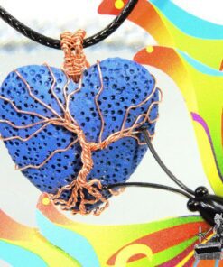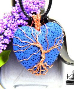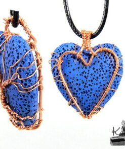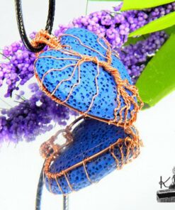 Pendentif wire wrapped en cuivre naturel sur une pierre de lave. Il suffit simplement de déposer une goutte de votre huile essentielle ou de votre parfum préféré sur la pierre de lave afin de bénéficier des bienfaits des huiles tout au long de la journée. Un tour de cou accompagnera ce pendentif, afin qu’il puisse être porté dès sa réception.