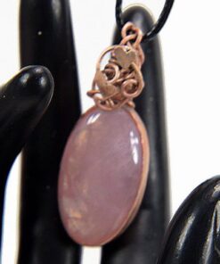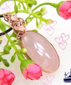 Laissez-vous envoûter par le contraste fascinant de ce pendentif en Quartz Rose, une gemme de tendresse absolue sertie dans un écrin de cuivre naturel travaillé à la main. Surmonté d’une bélière ornée de cœurs délicats, ce bijou artisanal semble avoir traversé les voiles du temps et les mystères des bois anciens. Véritable lien entre la douceur minérale et la magie sylvestre, il est une invitation à porter sur votre cœur une parcelle d’éternité et de protection.