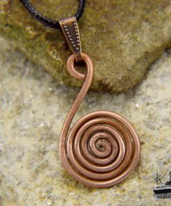 Célébrez l’évolution avec ce pendentif spirale en cuivre du Trésor des Korriganes, un bijou artisanal patiné au sel symbolisant la force vitale et la croissance spirituelle pour harmoniser vos flux énergétiques.