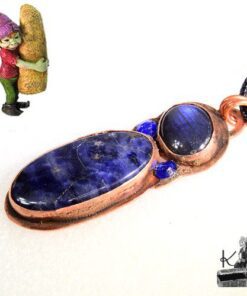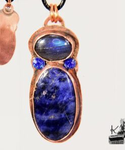 Ce pendentif entièrement fait main est composé d’une labradorite bleue et d’une magnifique onyx bleu.