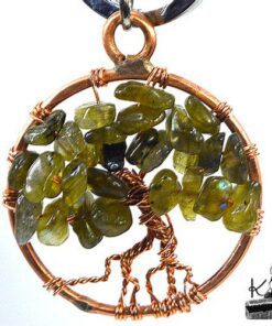 Porte-clés arbre de vie en labradorite véritable et en cuivre.
