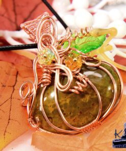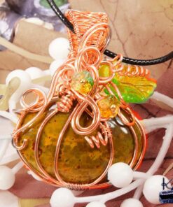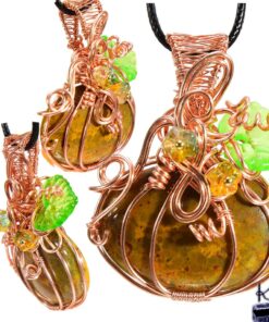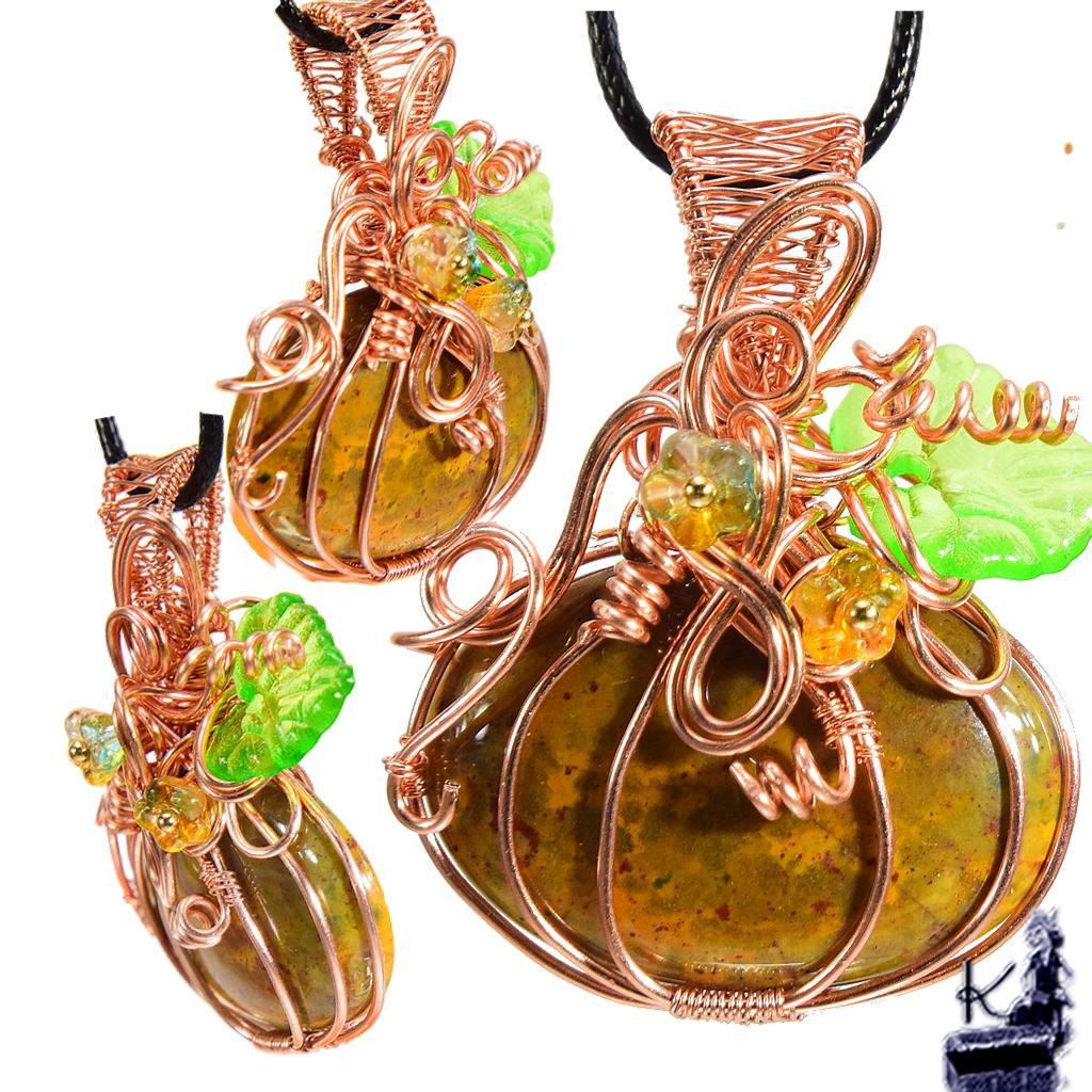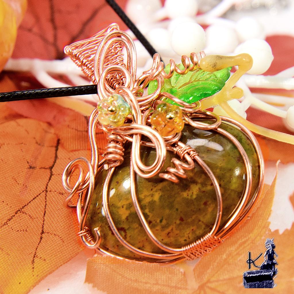 Pendentif avec une belle bloodstone ( pierre de sang ) transformée et citrouille wire wrapped en cuivre naturel