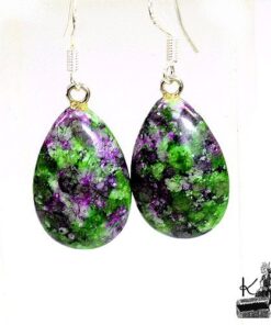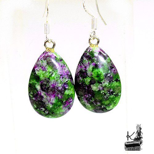 Boucles d’oreille en agate et en rubis zoisite. Les attaches sont en argent925