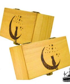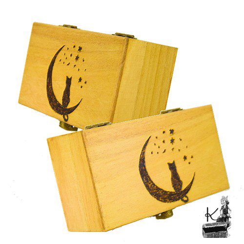 L’Écrin : Boîte en bois véritable, délicatement pyrogravée et cirée à la main.