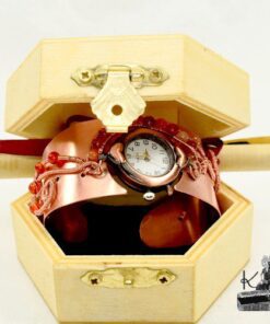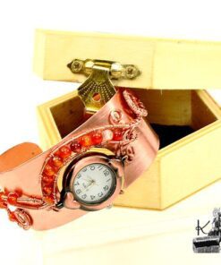 - Le Bijou : Bracelet montre de type manchette en cuivre naturel forgé à la main.